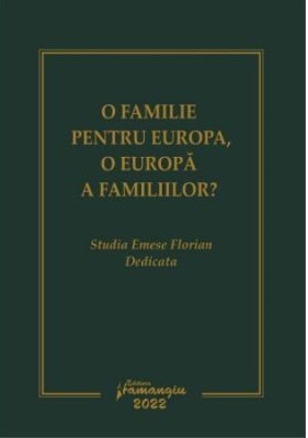Dedicam acest volum omagial colegei noastre Doamnei Profesor univ. dr. Emese Florian in semn de recunoastere si pretuire pentru intreaga sa activitate didactica si stiintifica la Facultatea de drept a Universitatii Babes-Bolyai mai bine de treizeci de ani. Titlul volumului este sugestiv O familie pentru Europa o Europa a familiilor . Fara indoiala notiunea dar si contururile relatiilor de familie s-au schimbat mult in ultimul timp. Jurisprudenta Curtii Europene a Drepturilor Omului si cea a Curtii de la Luxembourg au contribuit din plin la aceste schimbari. Dar in pofida acestor schimbari traditia a reusit sa se mentina incercand sa supravietuiasca si sa convietuiasca in armonie cu noul. Oare a si reusit Colega noastra Emese Florian a reusit sa adune pe portativul vietii o intreaga suita de lucrari fundamentale intre care se remarca Cursul de dreptul familiei publicat in mai multe editii la Editura C. H. Beck Regimurile matrimoniale la aceeasi editura alaturi de un numar insemnat de studii si articole care vor dainui si care pulseaza toate ca o singura inima insufletind mintea si spiritul celor ce le citesc. Dan Andrei PopescuSpecificatii