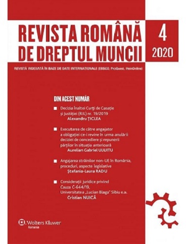 Revista Romana de dreptul muncii nr. 4/2020