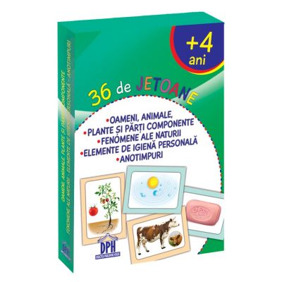 36 de jetoane - oameni, animale, plante si parti componente, fenomene ale naturii, elemente de igiena personala, anotimpuri,