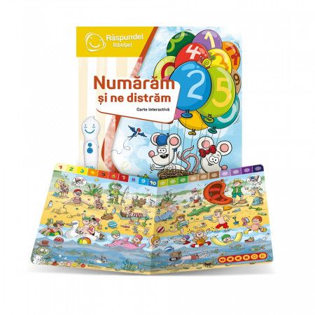 Cartea interactiva pentru copii Numaram si ne distram le prezinta copiilor incepand cu varsta de 3 ani numerele si ii invata sa numere pana la douazeci printr-o serie de texte sunete si exercitii distractive. Cartea ii duce pe copii in curtea din spate la magazinul de jucarii la rau sau chiar in varful copacilor. Dar de ce acolo Vei fi surprins dar peste tot sunt o multime de lucruri de numarat. Ghizii Matilda si soarecele Ludovic ii vor convinge pe copii de faptul ca cifrele pot fi distractive. Cu ajutorul acestei carti copiii isi pot testa si puterea de observatie atentia si memoria. Vor gasi numere distractive la carnaval la mare sau la munte Hai sa vedem. Continut Peste 2. 100 de sunete si texte. Aceasta carte functioneaza doar impreuna cu creionul Albi pe care il puteti achizitiona separat sau il gasiti in pachetele cu creion si carte. Un creion functioneaza cu toate produsele Raspundel Istetel. Varsta recomandata 3 aniSpecificatii