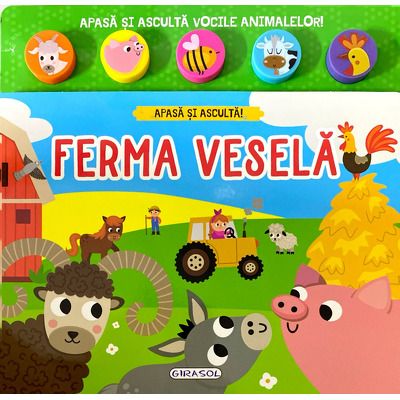 Apasa si asculta sunetele fermei 12 pagini color cartonate decupate cu 5 butoabe sonore. Pentru copii cu varsta de peste 3 ani.Specificatii