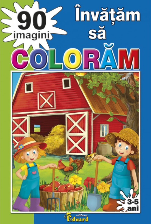 Invatam sa coloram contine 90 de pagini cu minunate imagini de colorat potrivite varstei de 3-5 ani.