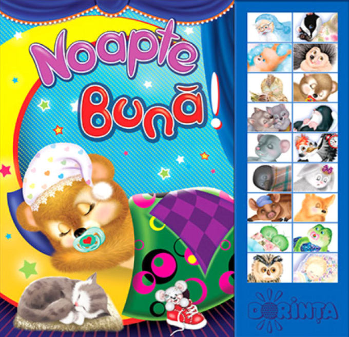 Micii curiosi descopera diverse animalute pregatite de culcare cu ajutorul imaginilor si sunetelor din aceasta carte.