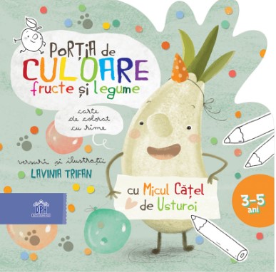 Cartea de colorat cu rime “Portia de culoare fructe si legume” ii va incanta pe copiii cu varsta intre 3-5 ani si ii va face sa-si dea frau liber imaginatiei si laturii artistice.