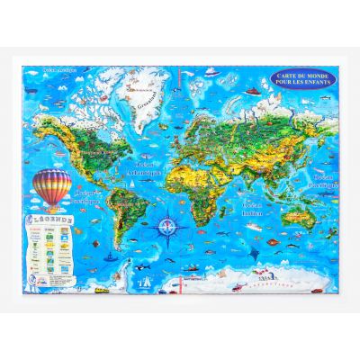 Carte du monde pour les enfants projection en 3D, 450x330mm (3DGHLCP45-FR)