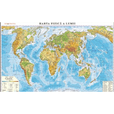 Harta fizica a lumii /Harta de contur (verso), 500x350 mm, fara sipci (LGHR3)