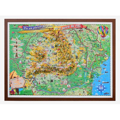 Pe-un picior de plai, pe-o gura de rai, 1000x700mm - Harta Romaniei pentru copii, proiectie 3D (3DGHPLAI-100)