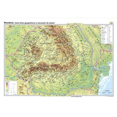 Romania. Harta fizico-geografica si a resurselor naturale de subsol - CR-3101A 160x120 cm