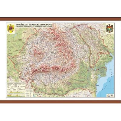 Romania si Republica Moldova. Harta fizica, administrativa si a substantelor minerale utile 1600x1200 mm (GHRF160)