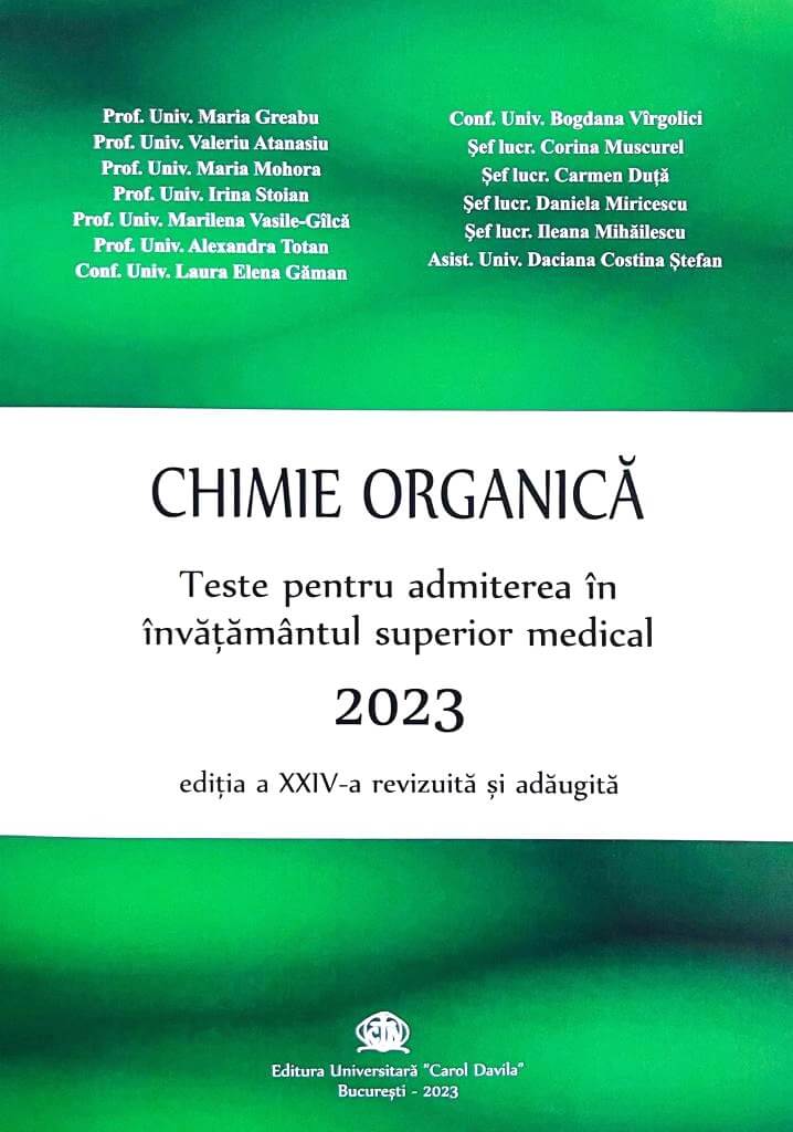 Chimie organica - Carol Davila. Teste pentru admiterea in invatamantul superior medical 2023