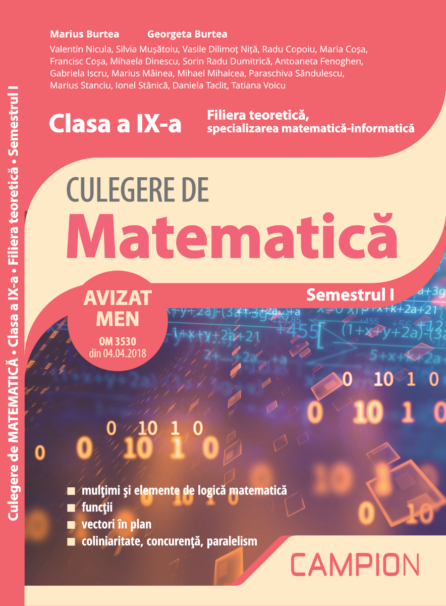 Culegere de matematica. Clasa a 9-a. Semestrul 1. Filiera teoretica, specializarea matematica-informatica - Marius Burtea, Georgeta Burtea