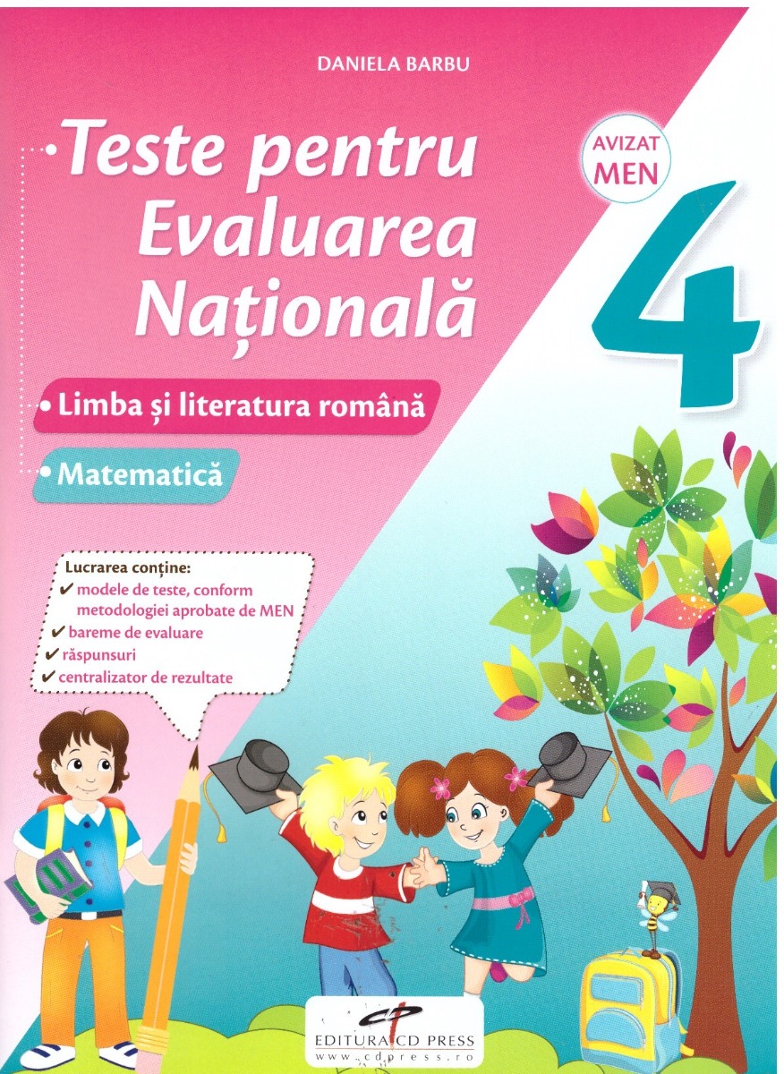 Lucrarea contine 12 teste-model pentru Evaluarea Nationala sustinuta la finalul clasei a IV-a, elaborate in conformitate cu Metodologia de Evaluare aprobata de MEN si cu programa scolara in vigoare (OMEN nr. 5003 din 02. 12. 2014).