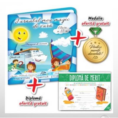 Click pe poza alaturata pentru a vizualiza continutul Pachetul contine 1. Jurnalul meu magic de vara clasa pregatitoare 2. Medalie pentru merite deosebite 3. Diploma de merit Povestea continua... ... dupa ce vacanta de iarna a fost petrecuta in compania fascinanta a unui prieten magic Jurnalul de iarna este timpul sa le daruim copiilor un Jurnal la fel de magic pentru vacanta de vara. Asa cum deja i-am obisnuit pe micii nostri prieteni le oferim un ghid prietenos de vacanta care sa raspunda intereselor lor sa le incite curiozitatea sa ii determine sa fie creativi imaginativi sa ii incurajeze sa comunice relaxati cu cei din jurul lor. Jurnalul meu magic de vara Este un material interactiv copilul lucreaza creeaza comunica se joaca... Contribuie la dezvoltarea abilitatilor practice si a acuitatii vizuale prin confectionarea de obiecte din materiale reciclabile realizarea de tablouri Origami capacitatii de a comunica si lucra in echipa prin realizarea unor proiecte impreuna cu un adult cum ar fi prepararea unor produse culinare dupa retete simple si amuzante . Editura Delfin pune la dispozitia cadrelor didactice LA CERERE cate O DIPLOMA pentru fiecare Jurnal comandat pe care sa o ofere elevului pentru rezultatele obtinute de-a lungul intregului an scolar In curand Editura Delfin va asteapta cu noi surprize auxiliare interactive creative si complete Comunicare in limba romana Matematica si explorarea mediului clasa pregatitoare clasa I si clasa a II-a Limba si literatura romana Matematica clasa a III-a si clasa a IV-a si alte discipline. 10 motive pentru care sa ai lucrarile magice Introducerea in atmosfera magica se face intr-o maniera jucausa si prietenoasa un cuvant inainte in... rime Cel mic descopera cateva tari ale planetei sau calatoreste pe toate continentele intr-un ocol al lumii ca un adevarat Jules Verne Fii si tu parinte Jocuri de rol cu tematica atractiva - dezvoltarea spiritului de echipa spiritului de competitie determinarea membrilor familiei sa colaboreze sa comunice si sa isi asume anumite responsabilitati. Jocurile copilariei in aer liber Colectionarea diferitelor materiale adunate din vacanta exemplu un bilet de tren un bilet de la un spectacol de teatru concert... Vizarea competentelor dobandite de elevi pe parcursul intregului an scolar Activitati gandite in maniera integrata Carticica magica poate fi decupata clasa pregatitoare - carticica de colorat atractiva clasa I si clasa a II-a - Stiati ca... -uri curiozitati si imagini de colorat clasa a III-a si clasa a IV-a - album de cercetator. Cartea postala - poate fi decupata si expediata Doamnei Invatatoare Material interactiv care il ajuta pe copil sa fie creativ inventiv si capabil de comunicare reala cu cei din jur. Cei mici invata spre exemplu sa-si organizeze timpul invata despre diferentele de fus-orar calatorind in alte tari sau pe alte continente despre obiceiurile culinare ale altor popoare gatind impreuna cu familia descopera animale pasari din diferite zone ale lumii toate acestea satisfacand nevoia copiilor de a cerceta de a descoperi de a explora lucruri locuri noi si intamplari din orizontul lor de interes. Singurele lucrari de pe piata care ii implica in mod real atat pe copii cat si pe parinti in activitati comune interesante instructive si relaxante. Copilas dragalas E vara Un nou jurnal asteapta sa-ti dezvaluie secretele lui. Te va insoti in calatoriile acestei veri si te va mentine in forma. Accepta compania lui plina de provocari si cele invatate in timpul scolii te vor ajuta sa le faci fata Dragi parinti de copilasi dragalasi Va sta bine cand sunteti curiosi cand sunteti jucausi cand va lasati purtati din nou in lumea magica a copilariei Indrazniti Alaturati-va copiilor vostri si descoperiti impreuna secretele acestui jurnal Dragi parinti de copilasi dragalasi Va sta bine cand sunteti curiosi cand sunteti jucausi cand va lasati purtati din nou in lumea magica a copilariei Indrazniti Alaturati-va copiilor vostri si descoperiti impreuna secretele acestui jurnalSpecificatii