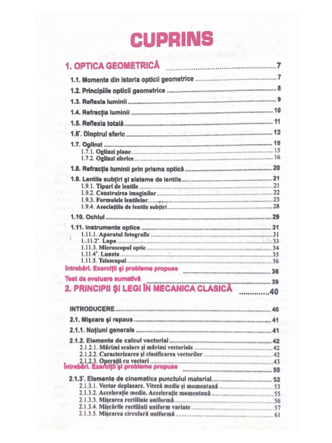 Consideram ca prin acest manual se pune la indemana elevilor si profesorilor un instrument de lucru util, placut si multifunctional, care le va permite o abordare coerenta si aprofundata a notiunilor de optica geometrica si de mecanica fizica, contribuind prin aceasta la o buna pregatire a elevilor in procesul de instruire.