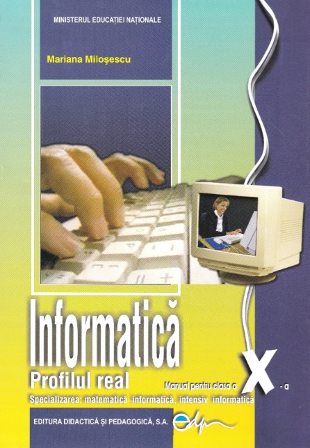 Informatica, manual pentru clasa a X-a, C++- profil real intensiv, specializarea matematica-informatica, castigator al licitatiei M006 organizata de MEC in 2005.
