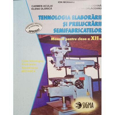 Cartea "Manual de Tehnologia elaborarii si prelucrarii semifabricatelor cls. a XII-a - I.Moraru, C.Aculai, E.Olarica, T.Oghina, E.Balaceanu". face parte din categoria carti >> Manuale scolare - Clasa a 12-a - Tehnologie / Tic