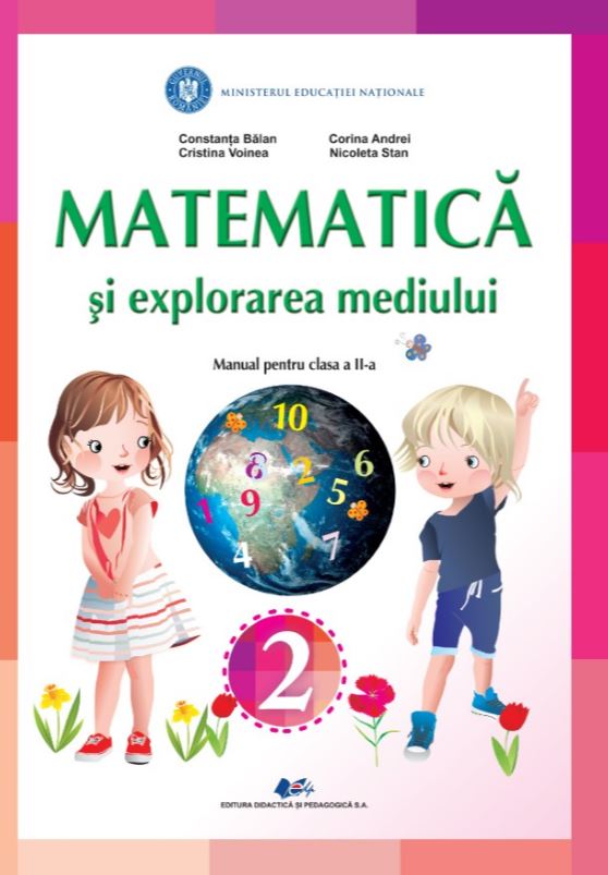 Acest manual Matematica si explorarea mediului clasa 2 Editura didactica si pedagogica este aprobat prin Ordinul Ministrului Educatiei Nationale nr. 3970/15. 06. 2018 si este realizat in conformitate cu programa scolara aprobata prin Ordinul Ministrului Educatiei Nationale nr. 3418/19. 03. 2013. Autorii lucrarii aparute in 2020 sunt Constanta Balan, Cristina Voinea, Corina Andrei si Nicoleta Stan.
