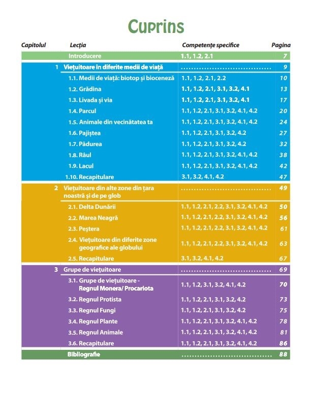 Manualul se prezinta ca un ghid necesar cercetarii si cunoasterii lumii vii si raspunde interesului elevilor pentru cunoasterea mediului, exprimat prin intrebarile frecvente pe care si le pun elevii, prin curiozitatea si interesul pentru informatiile privind speciile de vietuitoare in mediul lor de viata.