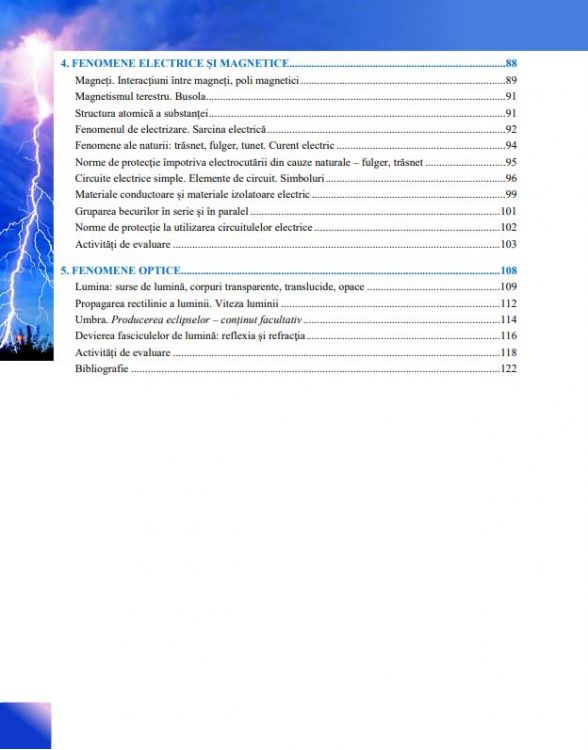 Pentru a afla ce este fizica va invitam intr-o calatorie de la cer la Pamant apoi mai departe in lumea pe care nu o mai puteti vedea cu ochiul liber. Veti fi insotiti de patru echipe de ghizi specializati pe care ii vom prezenta in continuare. Ei va vor ajuta sa intelegeti contributiile unor oameni de stiinta celebri la dezvoltarea cunoasterii noastre. Curiozitatea a ridicat privirea oamenilor spre bolta cereasca din cele mai vechi timpuri ale existentei noastre. De-a lungul timpului oamenii au botezat constelatii au urmarit miscarile corpurilor ceresti au construit telescoape in incercarea de a le vedea mai bine si mai departe. A urmat dorinta de a ajunge acolo pentru a intelege mai mult. Visul devine realitate pe masura ce trece timpul. Au fost lansate rachete si sateliti artificiali. Avem o Statie Spatiala Internationala. La ora actuala modulul Curiosity care a fost trimis de NASA sa lucreze pe planeta Marte incearca sa studieze conditiile mediului de pe aceasta planeta utilizand laboratoarele cu care este echipat. Intr-o buna zi vor exista oameni care vor locui pe alte planete din Sistemul solar. Probabil vom incepe cu planeta Marte pe care o cercetam azi. Tot curiozitatea va va indemna sa explicati o multitudine de fenomene care se intampla in jurul vostru. De ce apar tunetele fulgerele curcubeele ploaia ninsoarea si alte fenomene atmosferice Ce este electricitatea Cum putem obtine energie electrica Cum functioneaza sistemele din corpul nostru si ale celorlalte vietuitoare Din ce sunt alcatuite corpurile care ne inconjoara Exista ceea ce nu putem vedea cu ochiul liber Fizica este stiinta care raspunde acestor intrebari Si multor altora... Este una dintre stiintele naturii cea mai complexa dintre acestea. Natura este formata din corpuri. Unele au viata altele nu. Corpurile sunt alcatuite din materie. Toate corpurile au proprietati. Unele proprietati pot fi masurate altele nu. Din masurarea proprietatilor corpurilor se nasc marimile fizice. Masurarea necesita unitati de masura instrumente si procedee. Corpurile iau parte la tot felul de Intamplari pe care le numim fenomene. Unele dintre ele se numesc fenomene fizice. Spre exemplu tunetul fulgerul propagarea miscarea interactiunea corpurilor. In timpul fenomenelor fizice corpurile se supun unor legi. Pentru a descoperi sau a verifica aceste legi utilizam experimente. Adica provocam fenomenele in laboratoare sau in mediul natural. Mai multe legi care se refera la fenomene inrudite dau nastere unei teorii. O teorie este acceptata atunci cand este verificata experiinental. Asadar... Fizica este tot ceea ce se afla in jurul nostru si... chiar si in interiorul nostruSpecificatii