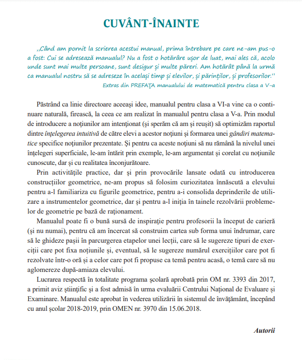 Manualul este aprobat de Ministerul Educatiei Nationale prinn OM nr.3970 din 15.06.2018