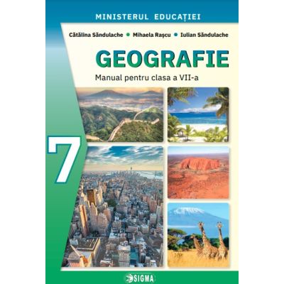 Manualul Sigma de Geografie pentru clasa a VII-a ofera o experienta vizuala de exceptie cu harti de mari dimensiuni si ilustratii deosebite. Recunoscut pentru bogatia materialului cartografic manualul ii invita pe elevii clasei a VII-a intr-o calatorie fascinanta prin continentele lumii stimulandu-le curiozitatea si gandirea critica. Lectiile interactive si exercitiile sumative sunt concepute pentru a facilita intelegerea profunda a geografiei si a mediului inconjurator. Cateva dintre punctele forte ale manualului de geografie pentru clasa a VII-a propus de Editura Sigma sunt Continuturile respecta rigoarea stiintifica fiind selectate astfel incat prin operarea lor sa se asigure formarea competentelor specifice dispuse prin programa scolara pentru toti elevii la un nivel optimal. Sunt prezentate atat continuturi cu nivel de accesibilitate minim si mediu dar si continuturi cu caracter stimulativ Vreau sa stiu mai mult ori Stiai ca abordate corect din perspectiva disciplinei. Manualul cuprinde si continuturi abordate din perspectiva interdisciplinara si transdisciplinara oferind astfel posibilitatea realizarii conexiunilor dintre elementele naturale si umane prezentate specifice geografiei cu cele specifice altor discipline limba si literatura romana matematica biologie chimie fizica istorie TIC . Modul de desfasurare a unitatilor de invatare favorizeaza invatarea independenta formarea vocabularului geografic intelegerea notiunilor specifice si realizarea de corelatii intre componentele mediului geografic. Lectiile sunt structurate astfel incat sa stimuleze atat activitatea independenta cat si activitatea de colaborare cu fiecare pas de studiu propus Analizeaza harta textul imaginea reprezentarea grafica Aminteste-ti Precizeaza Retine Aplica . Fiecare lectie cuprinde materiale geografice suport harti grafice imagini cu un pronuntat caracter practico-aplicativ rubrica Dictionar in care sunt explicati termeni geografici noi sectiuni cu informatii suplimentare semnalate corespunzator Vreau sa stiu mai mult Stiai ca o sinteza a lectiei cu notiuni geografice si explicatii corespunzatoare Retine variate activitati de invatare pentru desfasurarea carora pot fi abordate metode didactice care sa stimuleze dezvoltarea gandirii critice si formularea unor solutii la probleme actuale ale lumii contemporane invatarea prin colaborare investigatie etc. Aplica Proiect Dezbatere Chestionar sau Portofoliu . Optati pentru bucuria elevilor prin invatare Alegeti manualul de Geografie al Editurii SIGMA