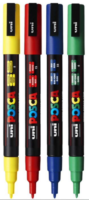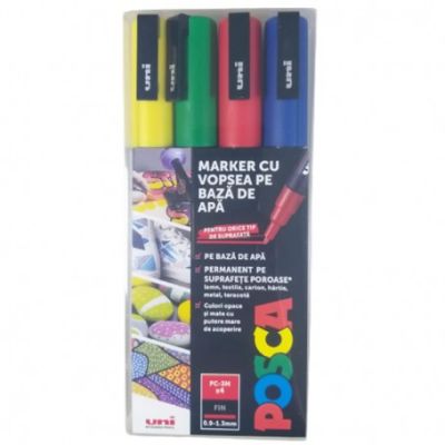 Marker UNI PC-3M 0. 9-1. 3 mm set 4 culori Posca