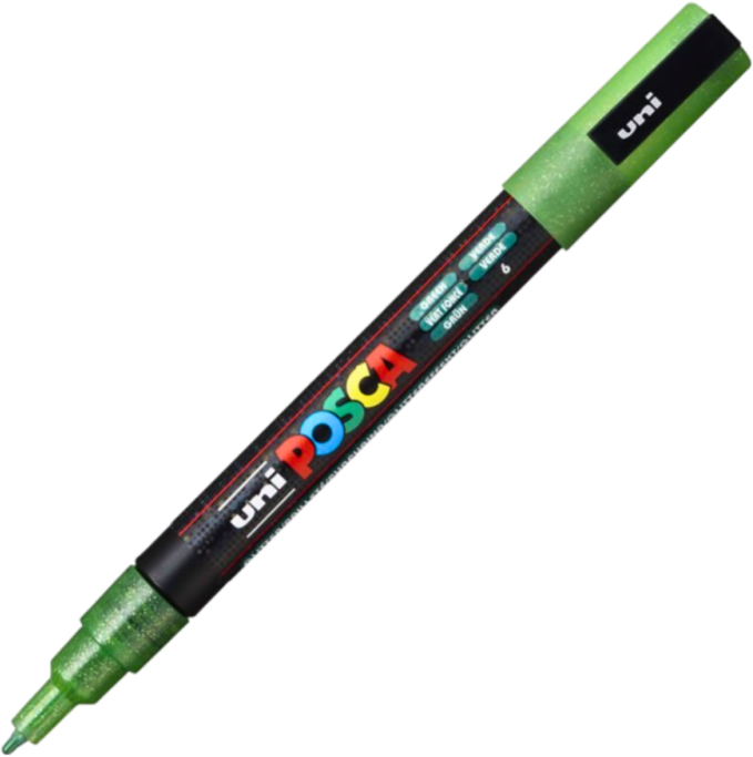 Markere/carioci pentru decoratiuni pe diferite suprafete Cerneala cu sclipici Cerneala permanenta pe suprafete poroase si nepermanenta pe suprafete lucioase Se pot utiliza pe orice suprafata lemn textile piele naturala si ecologica sticla ceramica piatra panza metal plastic hartie carton Varf subtire Grosime scriere 0. 9-1. 3 mm Corp gros Corp din material plastic Forma corp cilindrica Culori intense 8 nuante disponibile Mecanism cu supape care etanseaza perfect pentru a pastra culoarea in interiorul markerului in cele mai bune conditii Bila din corpul markerului ajuta la mixarea cernelii ori de cate ori este nevoie. Cerneala pe baza de apa in culori intense opace Culorile sunt solubile in apa se pot dilua pentru a obtine efecte de gradient atat timp cat cerneala este umeda nu s-a uscat Culorile se pot amesteca intre ele pentru a obtine noi nuante atat timp cat cerneala este umeda nu s-a uscat Pot fi aplicate noi straturi de culoare dupa ce se usuca stratul precedent Tehnica blowing - tehnica prin sulfare - se pot obtine efecte de aerograf prin suflarea usoara asupra varfului markerelor Cerneala rezistenta la razele UV Pe suprafetele care nu sunt poroase culorile necesita fixare pentru rezistenta la apa Pe lemn plastic piatra si sticla culorile se fixeaza cu un lac pe baza de apa special conceput in acest sens. Pe ceramica poroasa netratata se fixeaza culorile in cuptor. Pe ceramica tratata fixarea culorilor se realizeaza cu un lac pe baza de apa special conceput in acest sens. Pe metal se fixeaza culorile cu un lac pe baza de apa ce rezista in aer liber special conceput in acest sens. Pe panza lana canepa hartie sau carton nu este necesara fixarea culorilor dar pentru conservarea lor in timp se pot fixa cu un lac pe baza de apa special conceput in acest sens. Pe materiale textile culorile necesita fixare prin calcarea cu fierul fara aburi sau prin utilizarea unui uscator de par. Culorile se aplica pe suprafete curate Materialele poroase absorb mai multa culoare motiv pentru care poate fi necesar aplicarea mai multor straturi. Timpul de uscare poate varia in functie de materialul pe care se aplica. Inainte de utilizare capacul inchis agitati energic markerul pentru mixarea culorii se va auzi bila in interior Apasati usor pe varf de cateva ori pentru a se imbiba cu cerneala Varful poate fi curatat cu apa sub robinet ori de cate ori este necesar In cazul in care se usuca poate fi lasat la inmuiat in apa peste noapte Se recomanda a nu se lasa fara capac Dimensiuni marker lungime x grosime corp 142 x 13 mm