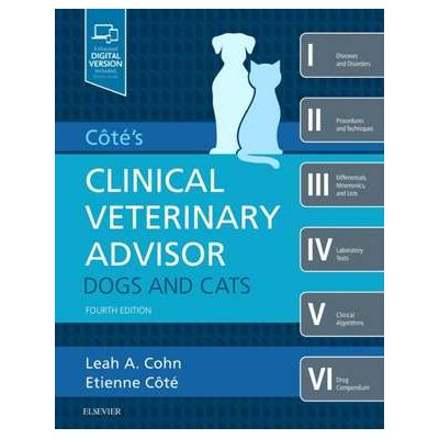 The indispensable resource for the busy small animal practitioner. Providing easy-to-use, cutting-edge information, Côté's Clinical Veterinary Advisor: Dogs and Cats, 4th Edition is like six books in one - with concise coverage of diseases and disorders; procedures and techniques; differentials, mnemonics, and lists; laboratory tests; clinical algorithms; and a drug compendium. Completely updated from cover to cover, this edition includes over a dozen all-new chapters on new and important topics including hyperadrenocorticism (food-related), hypercalcemia (idiopathic feline), meningoencephalitis of unknown etiology, incidentally-detected heart murmurs, and more. It also includes free access to a fully searchable companion website containing an electronic version of the text, all of the book's images in color, bonus chapters and video content, a searchable drug compendium, 200 client education handouts in both English and Spanish, and 35 customizable client consent forms.Specificatii