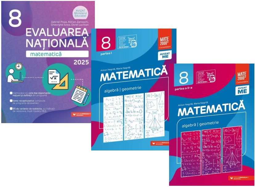 Pachet Matematica. Evaluarea Nationala 2024-2025 si Consolidare partea 1 si 2, clasa a 8-a - Gabriel Popa Anton Negrila