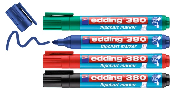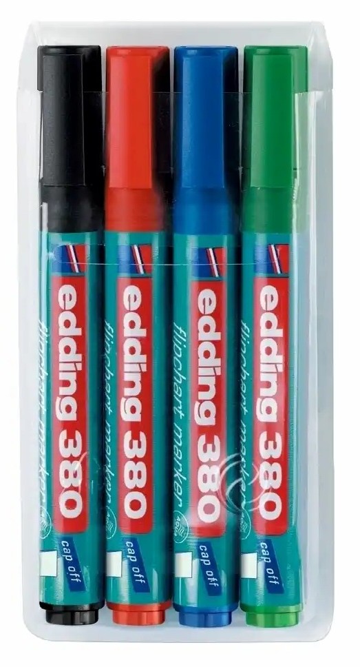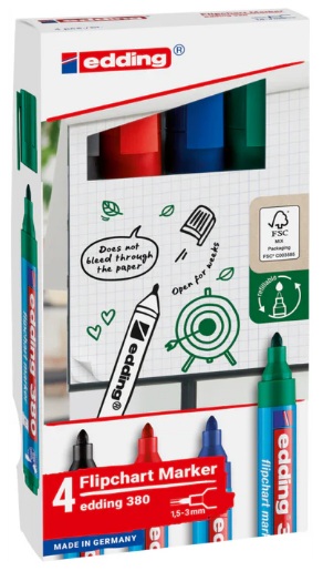 Marker Edding 380 pentru flipchart, varf rotund, 1. 5-3 mm, 4 culori/set