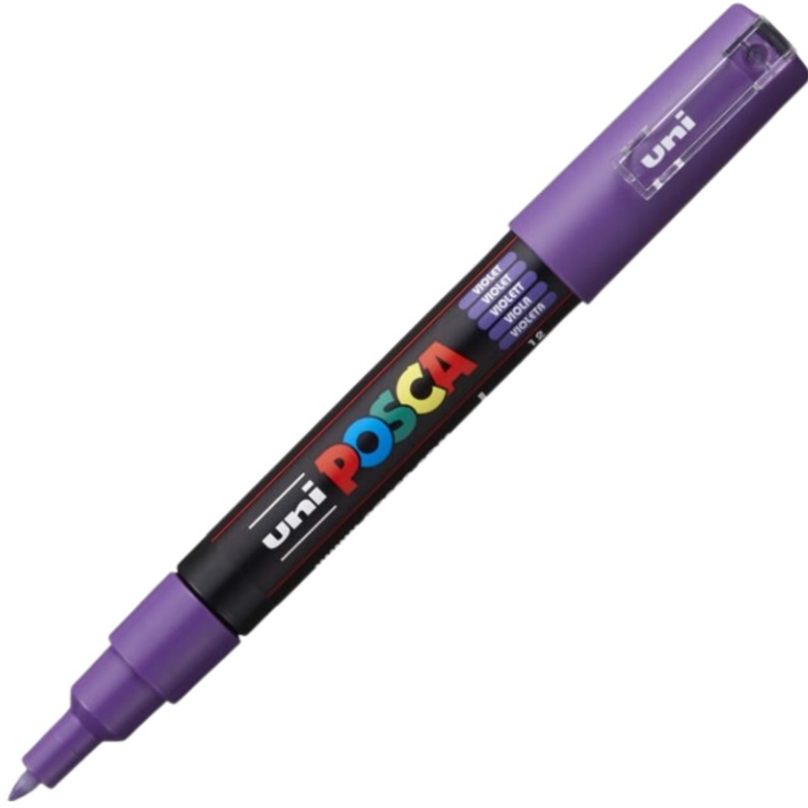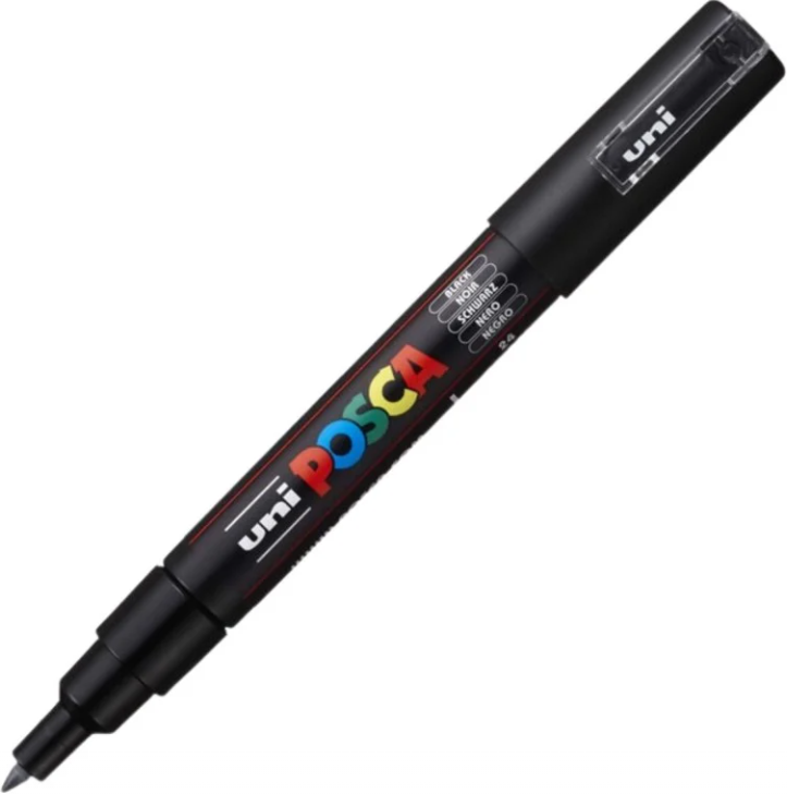 Marker/carioca pe baza de apa care poate fi folosit pe orice tip de suprafata cum ar fi textile lemn hartie plastic ceramica piele metal sticla etc. Markerele Posca sunt permanente pe suprafete poroase si nonpermanente pe suprafete lucioase. Vopseaua continuta in markere are putere mare de acoperire efect opac la baza si prin diluare cu apa se poate obtine efect de acuarela. Culorile se pot combina cat sunt inca umede. Markerul PC-1M Ideal pentru creatiile in format mic. Este preferat atat de copii cat si de adulti incepatori sau experti care il folosesc pentru a colora cu precizie.