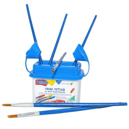 Caracteristici - foarte util pentru prescolari si elevi - doua compartimente ce pot fi umplute inidual cu apa fiecare avand capacel pentru inchidere ermetica - pensulele se curata foarte bine datorita celor doua compartimente - confectionat din plastic rezistent nontoxic. Avertizare Produsul este nou si comercializat in ambalajul original al producatorului. Imaginile de pe acest site au caracter informativ. Ambalajul trebuie indepartat recuperat si aruncat de catre un adult. Nu lasati ambalajele produselor la indemana copiilor. Produsul poate contine piese mici care se pot inghiti sau inhala de cei mici existand pericolul de sufocare sau nu este potrivita copiilor mai mici de 3 ani. Pastrati instructiunile si etichetele pentru referinte viitoare. Pastrati produsul departe de foc si nu il lasati in preajma temperaturilor ridicate si a umiditatii.Specificatii