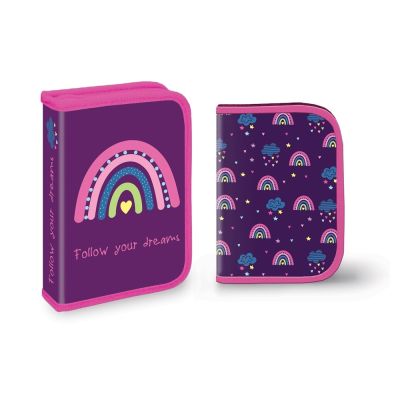 Pentru ca penarul este obiectul scolar pe care copii il utilizeaza poate cel mai des este esential ca acesta sa fie un motiv de satisfactie si buna dispozitie. Caracteristici - Penarul cu 2 extensii este echipat cu 32 piese ascutitoare radiera rigla 15cm 6inch 3 creioane grafit 12 carioci 12 creioane colorate orar tabel cu tabla inmultirii. - Creioanele colorate au sectiune triunghulara si sunt in urmatoarele culori galben portocaliu bej roz rosu mov verde deschis verde albastru deschis albastru maro negru. - Creioanele grafit au de asemenea sectiune triunghulara mina HB si corp lacuit negru cu dungi color. - Cariocile au forma rotunda varf subtire punct de scriere 1 mm. Culori disponibile galben portocaliu rosu roz albastru deschis violet mov albastru verde deschis verde maro negru. - Radiera are culoare alba si este realizata din cauciuc sintetic. - Ascutitoarea are corp din plastic si lama din metal. Diametru orificiu pentru ascutire 0. 7 cm. - Orarul si tabla inmultirii sunt asezate in buzunare din PVC transparent. - Penarul este realizat din poliester. De asemenea penarul este cartonat si buretat pentru o mai mare rezistenta la socuri externe. - Design-ul cu fermoar permite accesul usor la articolele din interior. Fermoarul din plastic are cursor metalic. - Accesoriile sunt fixate cu benzi elastice asigurand o depozitare ordonata. - Grafica FOLLOW YOUR DREAMS cu sclipici. - Ambalaj folie. Dimensiune penar deschis 30x20x2. 5 cm 51x20x1. 7 cm Dimensiuni accesorii carioca - 14. 5x1x1 cm creion colorat - 17. 5x0. 7x0. 6 cm creion grafit - 17. 5x0. 7x0. 6 cm radiera - 3. 5x2x0. 8 cm ascutitoare - 2. 7x1. 8x1. 2 cm orar - 13. 5x6. 2 cm tabel tabla inmultirii - 13. 5x6. 4 cm Avertizare Produsul este nou si comercializat in ambalajul original al producatorului. Imaginile de pe acest site au caracter informativ. Ambalajul trebuie indepartat recuperat si aruncat de catre un adult. Nu lasati ambalajele produselor la indemana copiilor. Se recomanda utilizarea produsului sub supravegherea unui adult. Produsul poate contine piese mici care se pot inghiti sau inhala de cei mici existand pericolul de sufocare sau nu este potrivita copiilor mai mici de 3 ani. Pastrati instructiunile si etichetele pentru referinte viitoare. Pastrati produsul departe de foc si nu il lasati in preajma temperaturilor ridicate si a umiditatii. Datorita masurarii manuale a produsului poate exista o diferenta minora fata de dimensiunea reala a produsului.Specificatii