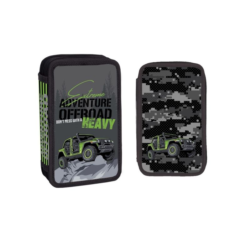 Pentru ca penarul este obiectul scolar pe care copii il utilizeaza poate cel mai des este esential ca acesta sa fie un motiv de satisfactie si buna dispozitie. Caracteristici - Penarul din material textil are 2 compartimente. - Acesta este echipat cu 29 piese ascutitoare radiera 3 creioane grafit 12 carioci 12 creioane colorate. - Creioanele colorate au sectiune triunghulara corp lacuit in culoarea scrierii si mina in urmatoarele culori galben portocaliu somon roz rosu mov verde deschis verde inchis bleu albastru maro negru. - Creioanele grafit au sectiune triunghulara mina HB si corp lacuit bicolor. - Cariocile au forma rotunda varf subtire punct de scriere 1 mm si inchidere cu capac. Culori disponibile galben portocaliu rosu roz violet mov bleu albastru verde deschis verde inchis maro negru. - Radiera are culoare alba si este realizata din cauciuc sintetic. - Ascutitoarea are corp din plastic si lama din metal. Aceasta are diametrul orificiu pentru ascutire de 0. 7 cm. - Penarul este realizat din material textil poliester. - Penarul este cartonat si buretat la exterior pentru o mai mare rezistenta la socuri externe. - Design-ul cu fermoar permite accesul usor la articolele din interior. Fermoarele din plastic au fiecare cate un cursor metalic. - Instrumentele de scris sunt fixate cu benzi elastice asigurand o depozitare ordonata. - Motiv OFFROAD. - Ambalaj folie. Dimensiune penar 20x14x5 cm Dimensiuni accesorii carioca - 14. 5x1x1 cm creion colorat - 17. 5x0. 7x0. 6 cm creion grafit - 17. 5x0. 7x0. 6 cm radiera - 3. 5x2x0. 7 cm ascutitoare - 2. 7x1. 8x1. 2 cm Avertizare Produsul este nou si comercializat in ambalajul original al producatorului. Imaginile de pe acest site au caracter informativ. Ambalajul trebuie indepartat recuperat si aruncat de catre un adult. Nu lasati ambalajele produselor la indemana copiilor. Verificati periodic integritatea iar daca au aparut deteriorari nu mai utilizati produsul. Produsul poate contine piese mici care se pot inghiti sau inhala existand pericolul de sufocare este ontraindicat copiilor mai mici de 3 ani. Pastrati instructiunile si etichetele pentru referinte viitoare. Pastrati produsul departe de foc si nu il lasati in preajma temperaturilor ridicate si a umiditatii. Datorita masurarii manuale a produsului poate exista o diferenta minora fata de dimensiunea reala a produsului.Specificatii