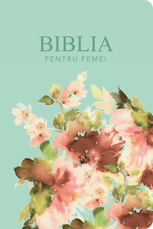 Biblia pentru femei, medie, coperta pvc flexibila, verde pal, cu model floral
