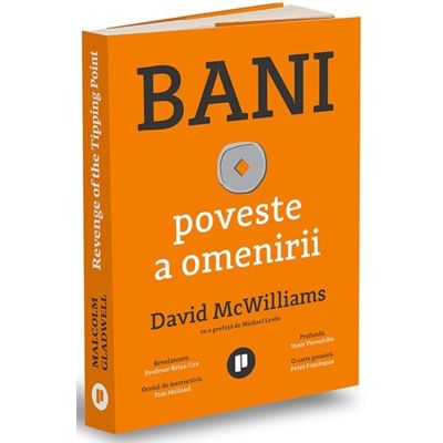Banii. Sunt al cincilea element, fara de care omenirii i-ar fi greu sa supravietuiasca. Acum, economistul mondial David McWilliams a scris o carte surprinzatoare, care exploreaza relatia noastra cu banii si modul in care sustin existenta civilizatiei asa cum o cunoastem. In Bani, McWilliams isi propune sa faca pentru bani ceea ce David Attenborough a facut pentru stiintele naturii, si anume sa le dezvaluie misterele, limitele si puterea lor uimitoare.