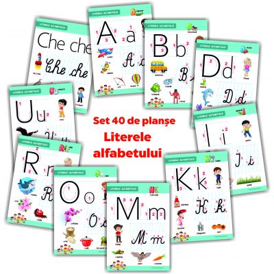Literele alfabetului. Set 40 de planse didactice pentru clasa pregatitoare si pentru clasa 1