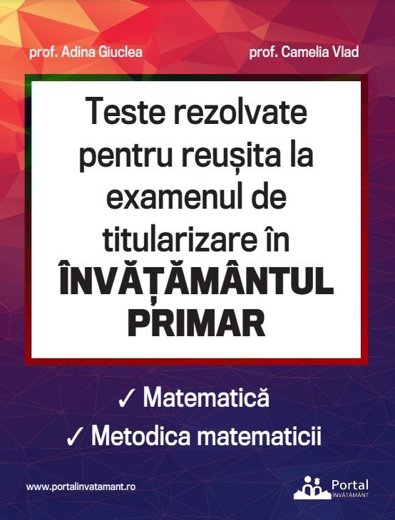 Culegerea de Teste rezolvate pentru reusita la examenul de titularizare in invatamantul primar Matematica Metodica matematicii vine sa acopere nevoia de pregatire a candidatilor la matematica vine sa acopere nevoia de pregatire a candidatilor la matematica. Potrivit noii programe candidatii la examenul de titularizare - invatatori trebuie sa cunoasca notiuni matematice incepand de la teoria multimilor operatiuni geometrie plana si mergand pana la geometria in spatiu. In plus contine si elementele de metodica predarii matematicii solicitate de noua programa. Avantajele lucrarii 15 subiecte rezolvate la matematica 15 subiecte rezolvate la metodica predarii matematicii rezolvari complete ale testelor antrenamentul necesar recapitularii integrale a materiei in vederea promovarii cu brio a examenului rezolvarea in timp util a subiectelor de pe foaia de examen abordarea rationala logica a subiectelor in vederea reusitei managementul emotiilor cresterea increderii in fortele proprii dezvoltarea puterii de concentrare educarea mentalului pentru reusita.Recenzii