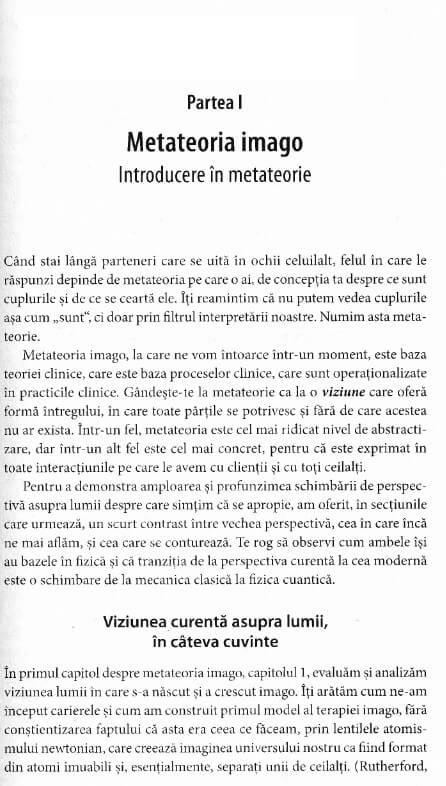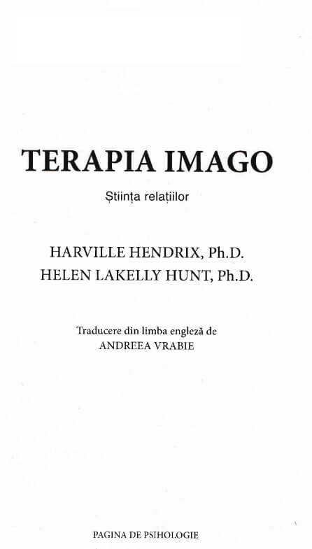 Terapia relationala imago a fost gandita si dezvoltata de dr. Harville Hendrix si completata de sotia lui dr. Helen LaKelly Hunt la sfarsitul anilor 1970. Ambii trecusera printr-un ort anterior si doreau sa inteleaga esecul relatiilor lor. Terapia imago a fost dezvoltata special pentru intelegerea si vindecarea relatiilor. Unele dintre problemele cu care terapia imago va poate ajuta includ provocari de comunicare conflicte recurente sentimente de deconectare lipsa intimitatii infidelitate. O mare parte din procesul imago este dedicat identificarii traumelor din copilaria timpurie care isi pun amprenta pe modul in care comunicam ne comportam si reactionam in relatiile adulte. Scopul terapiei imago este acela de a transforma conflictul in oportunitatea de a avea o relatie mai solida si mai fericita. Cei doi parteneri de cuplu invata sa se vindece personal cat si unul pe celalalt. In urma acestui proces ei devin mai sanatosi psihic mai vitali iar relatia lor se intensifica si pozitiveaza. Elementul-cheie al terapiei imago este dialogul constient un proces structurat de comunicare format din trei pasi oglindirea mesajelor rostite de emitator validarea acestora de catre receptor si transmiterea empatiei fata de emitator . Teoria imago este o teorie integrativa creatorul modelului de gandire imago Harville Hendrix preluand o serie de concepte elemente si explicatii din alte modele de gandire teoria sistemica teoria psihanalitica teoria Gestalt teoria umanista teoria jungiana teoria cognitiv-comportamentala teoria relatie-obiect psihodrama teoriile despre dezvoltarea si functionarea creierului uman si imbinandu-le cu o viziune inovatoare si pragmatica. Datorita acestor componente teoria imago este o forta intensa de metamorfoza psihologica si relationala. In imago vindecarea implica recunoasterea traumelor de dezvoltare din copilarie si asumarea responsabilitatii de a trai o viata constienta.Specificatii