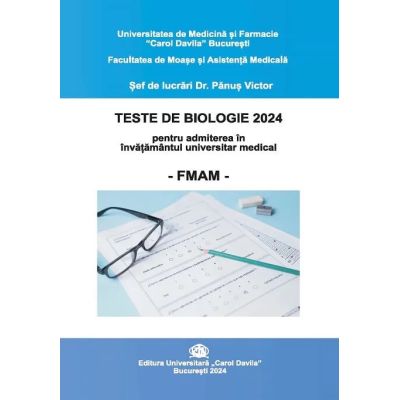 Teste de biologie 2024 pentru admiterea in Invatamantul universitar medical FMAM Victor Panus