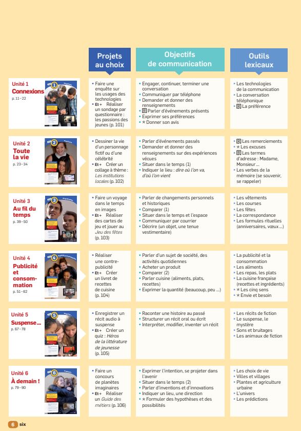 Manualul respecta specificatiile Programei de limba franceza pentru clasa a 7-a, limba moderna 2, atat in privinta competentelor generale si specifice de dezvoltat, cat si a continuturilor gramaticale, lexicale si fonetice. Tematica celor sase unitati este adecvata varstei si intereselor elevilor si contine subiecte atractive, deosebit de motivante: noile tehnologii, universul digital, literatura pentru tineret, publicitatea, robotica etc.