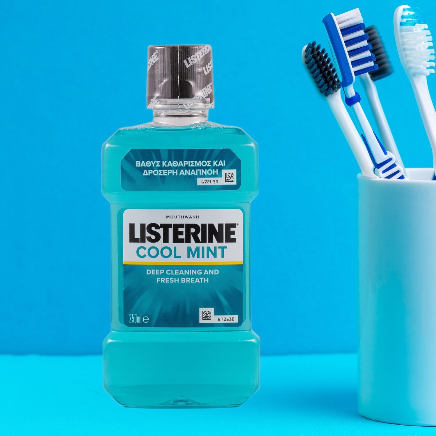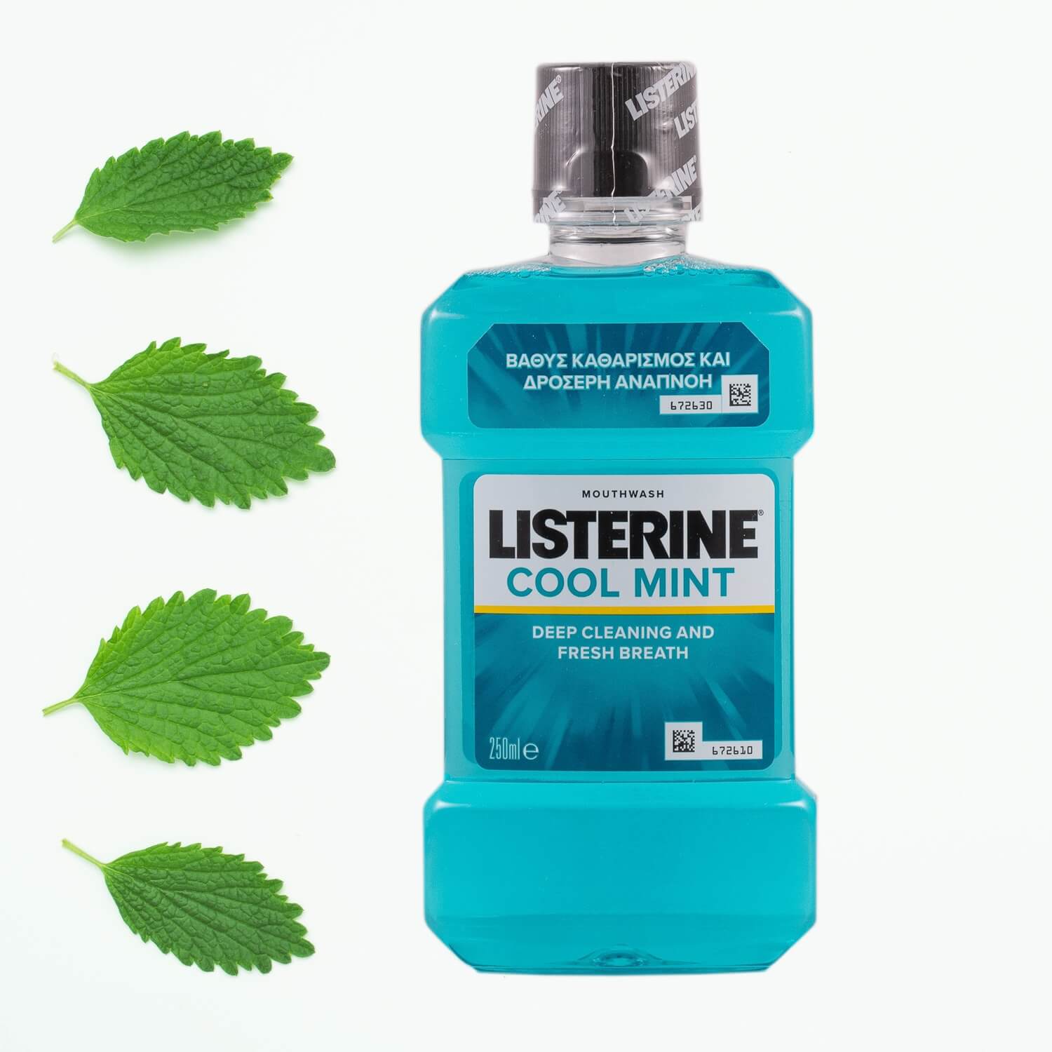 S-a dovedit clinic ca apa de gura Listerine Cool Mint lupta pentru prevenirea si reducerea placii bacteriene, ucide bacteriile si improspateaza respiratia.
