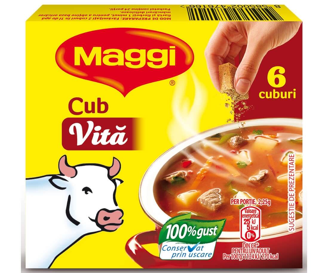 Maggi Cub este un ajutor de nadejde in bucatarie, avand in compozitie ingrediente atent verificate de specialistii nutritionisti Nestle, pentru a da un gust delicios de gaina mancarurilor tale.