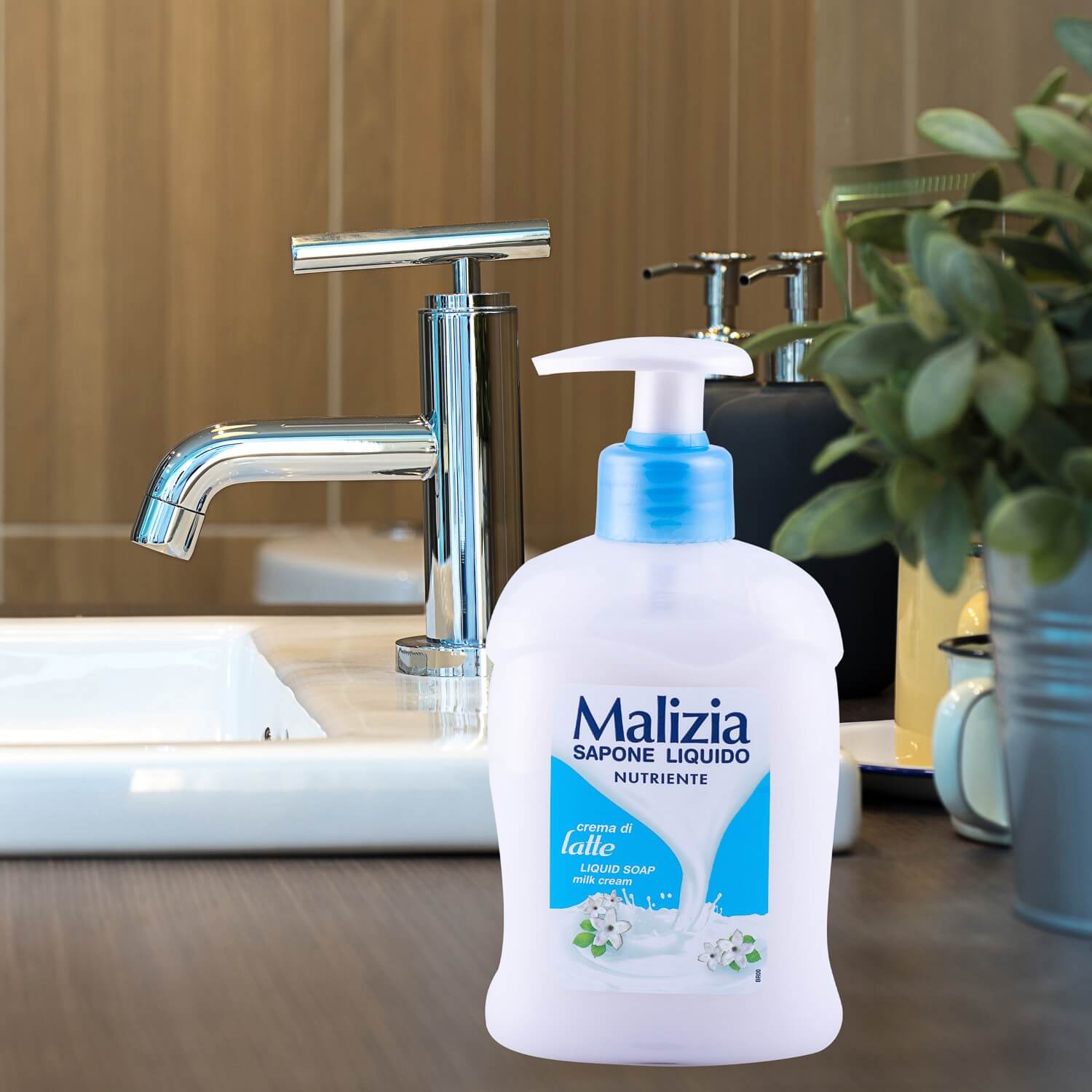 Daruieste-le mainilor tale o senzatie unica de catifelare cu ajutorul sapunului lichid Malizia cu crema de lapte.