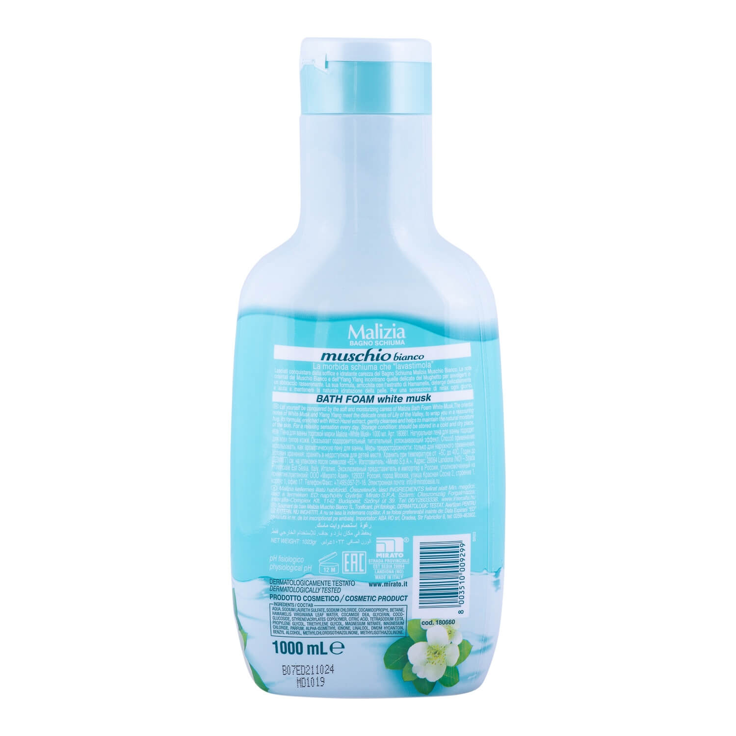 Spumantul de baie Malizia Muschio Bianco 1L are o formula ce contine substante nutriente si ofera pielii o placuta senzatie de hranire si catifelare, ca o dulce si captivata mangaiere.