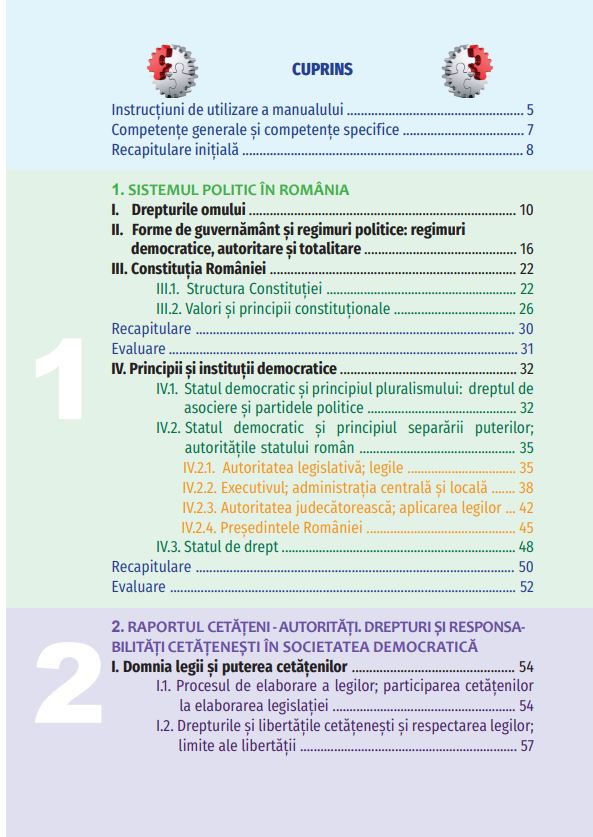 I.2. Drepturile și libertățile cetățenești și respectarea legilor;