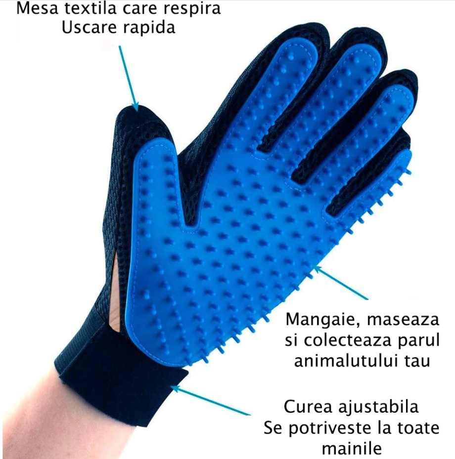 Manusa de periaj asigura animalului nostru de companie mai multa circulatie a sangelui si, de asemenea, indeparteaza parul mort si murdaria din blana ciinelui. Perfect pentru cainii cu par scurt, pe care periile si pieptenii pot provoca dureri inutile, dar si pentru pisici.