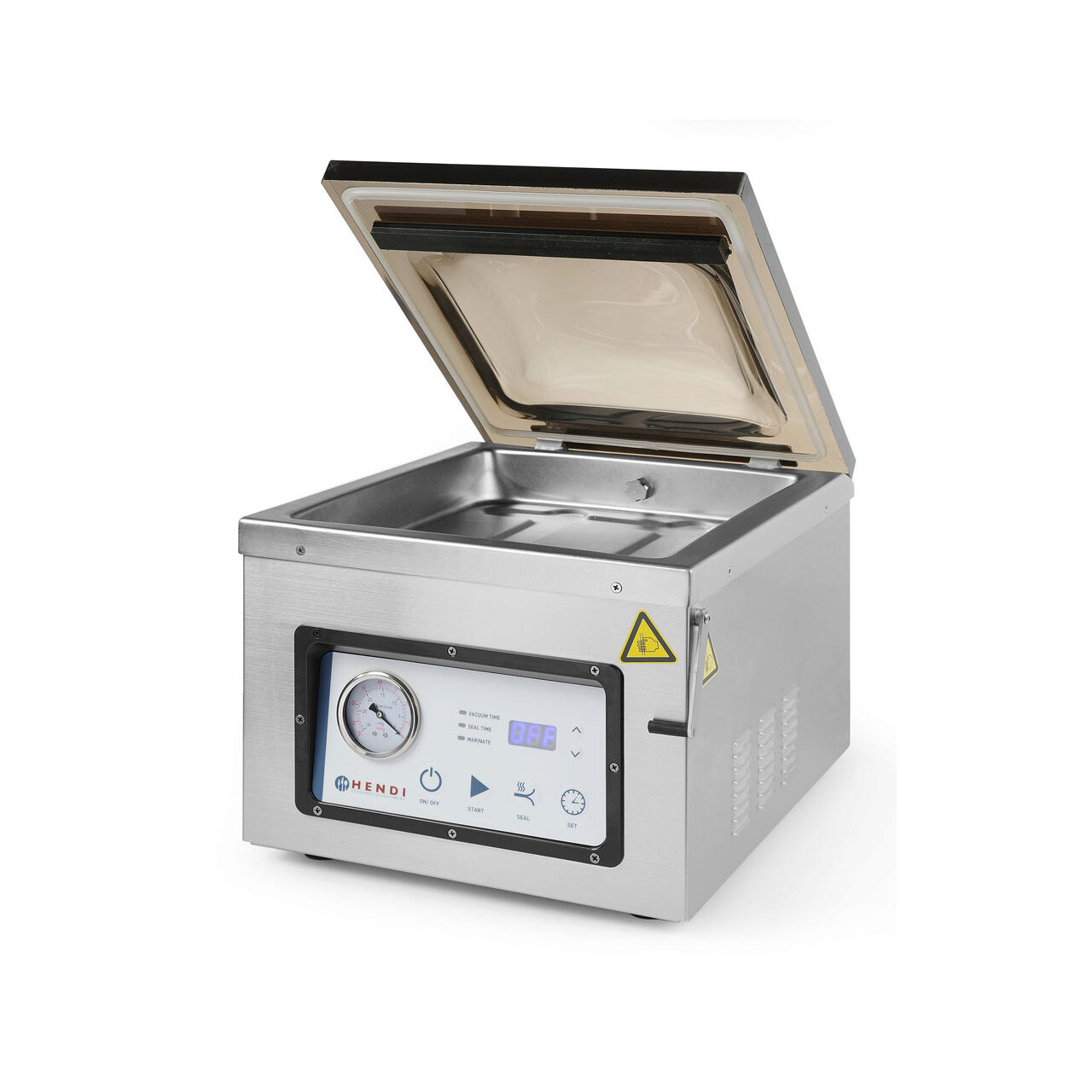 Cu aparatul de vidat alimente Hendi pastrezi prospeţimea alimentelor de pana la 5 ori mai mult timp faţa de metodele tradiţionale de conservare, nu risipesti alimentele si in acelasi timp faci economie de bani si timp. Procesul de vidare elimina aerul si prelungeste perioada de prospetime a alimentelor depozitate in congelator, frigider sau dulapuri. Acum poţi sa pastrezi alimentele in congelator pentru luni, chiar ani de zile, fara nicio arsura de congelare.