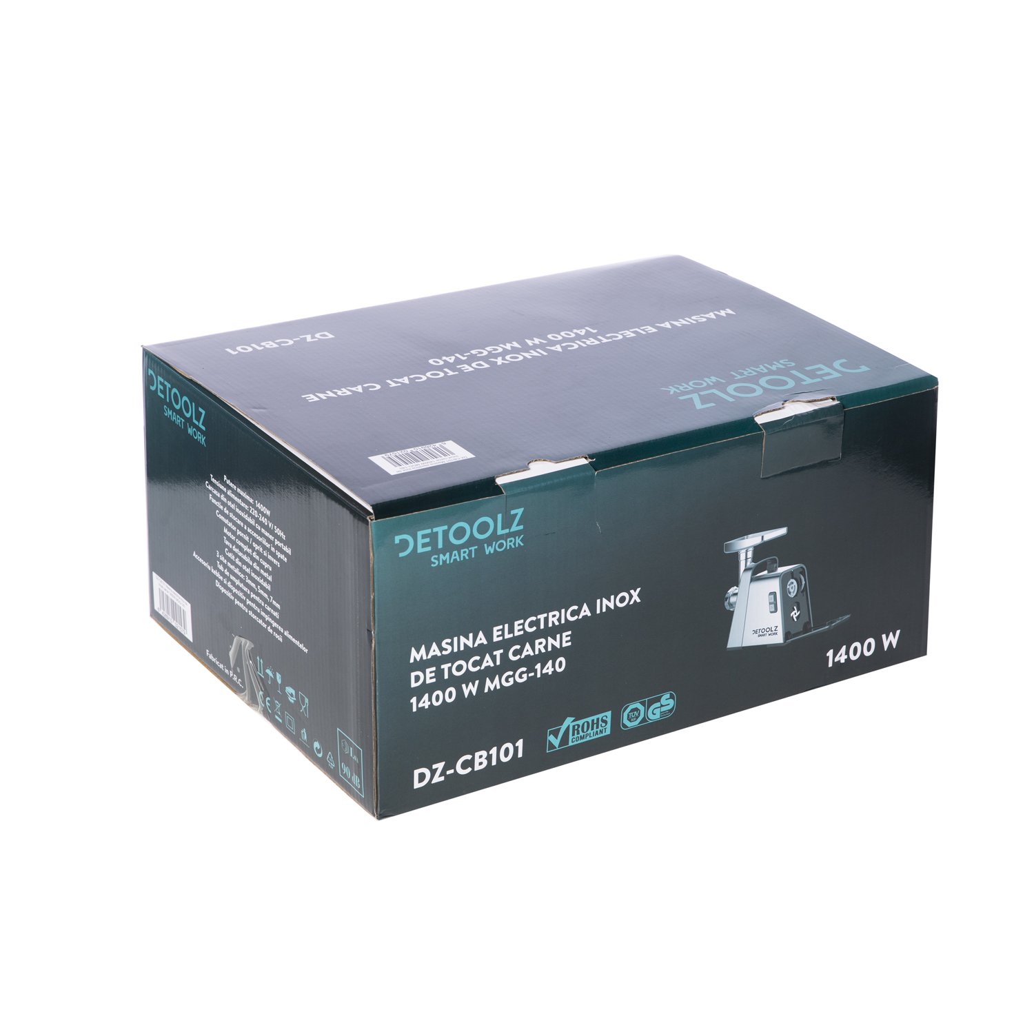 Masina electrica inox de tocat carne 1400W MGG-140, Detoolz DZ-CB101 este un produs robust, eficient si usor de utilizat pentru tocarea carnii rosii proaspete pentru carnati, chiftele/kebbe, musaca, prepararii sucului proaspat de rosii sau umplerii carnatilor de casa.