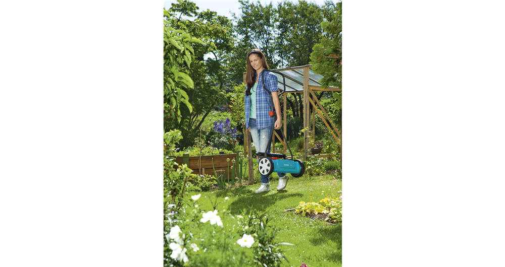 GARDENA Masina manuala de tuns iarba cu cilindru Classic 400 este ecologica si functioneaza fara energie electrica. Principiul este usor: pe masura ce impingeti, cilindrul de taiere si lama inferioara se misca fara contact. Asemanator cu foarfecele, lama de iarba este preluata si taiata. Tehnica de taiere fara contact (cilindru de taiat si lama inferioara nu se ating), masina de tuns iarba este prin urmare extrem de silentioasa si usor de impins. Cilindru de taiere din otel de calitate superioara calit. Rotile mari faciliteaza directia si permit o buna aderenta. Inaltimea de taiere dorita poate fi usor reglata in 4 pasi si poate fi usor citita pe o scala. Pentru spatiul de stocare cu economie de spatiu si pentru transportul facil, manerul poate fi impartit convenabil.